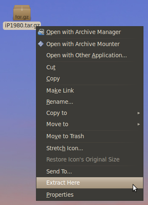 ![]() แตกไฟล์ที่ Download - click ขวา ที่ไฟล์ iP1980.tar.gz - เลือก Extract Here |
